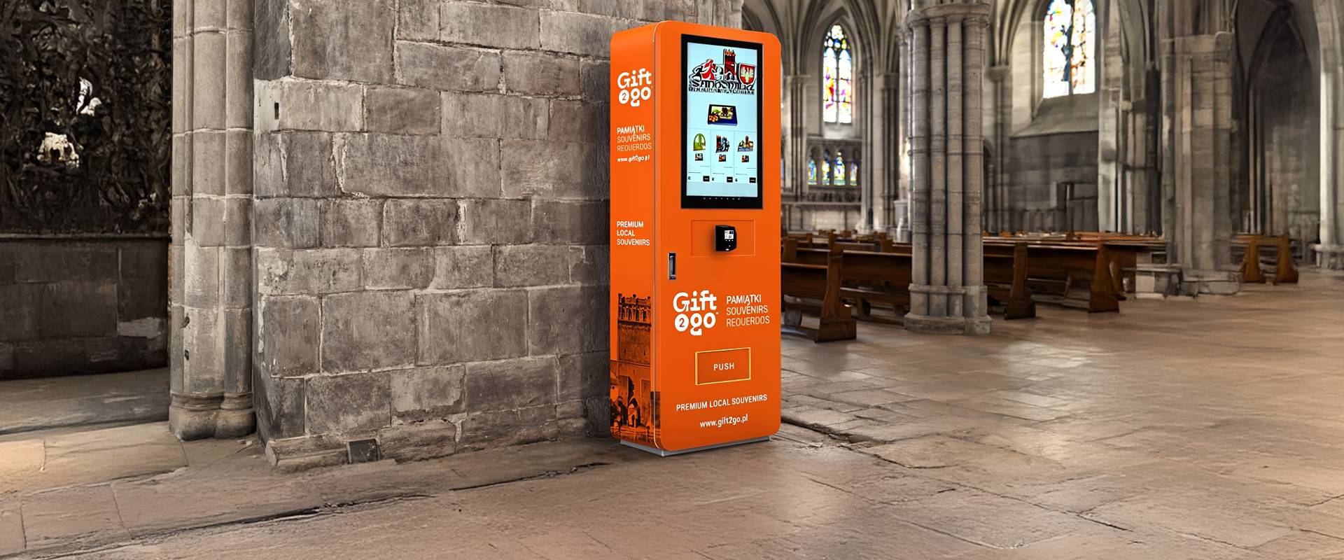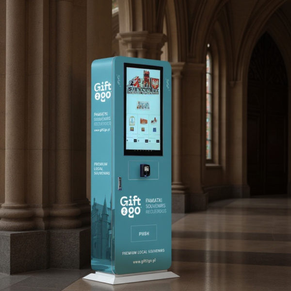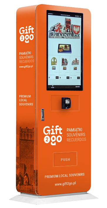 Gift2Go to nowoczesne, multimedialne urządzenie vendingowe stworzone z myślą o turystach i właścicielach atrakcji turystycznych. To techniczna nowość na rynku pamiątek — łączy w sobie sprzedaż, reklamę i informacje w jednym eleganckim, solidnym urządzeniu.