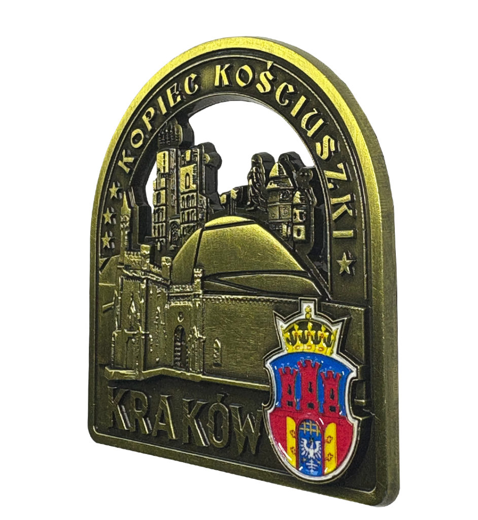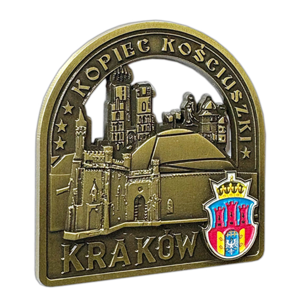 Magnes przedstawia monumentalny Kopiec Kościuszki – jedno z najważniejszych miejsc pamięci narodowej w Krakowie. Wzniesiony ku czci Tadeusza Kościuszki, bohatera walk o wolność Polski i Stanów Zjednoczonych, stanowi wyjątkowy symbol patriotyzmu i odwagi.