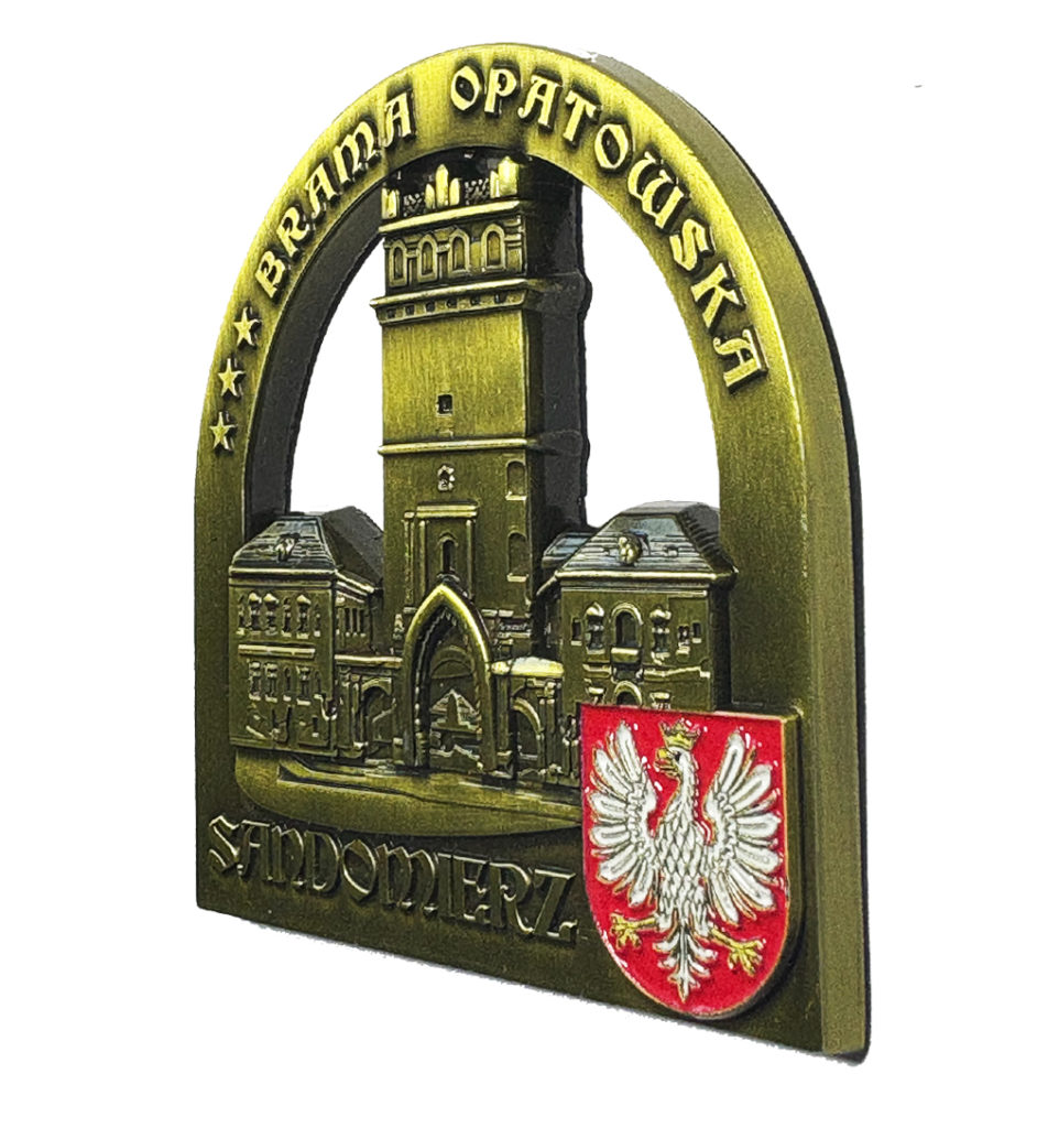 Brama Opatowska to jeden z najważniejszych symboli Sandomierza i jednocześnie jeden z najlepiej zachowanych przykładów średniowiecznej architektury obronnej w Polsce. Każdy z magnesów z tej serii oddaje charakterystyczny wygląd tej imponującej budowli – od gotyckiego łuku po strzelistą wieżę, z której roztacza się widok na panoramę miasta.